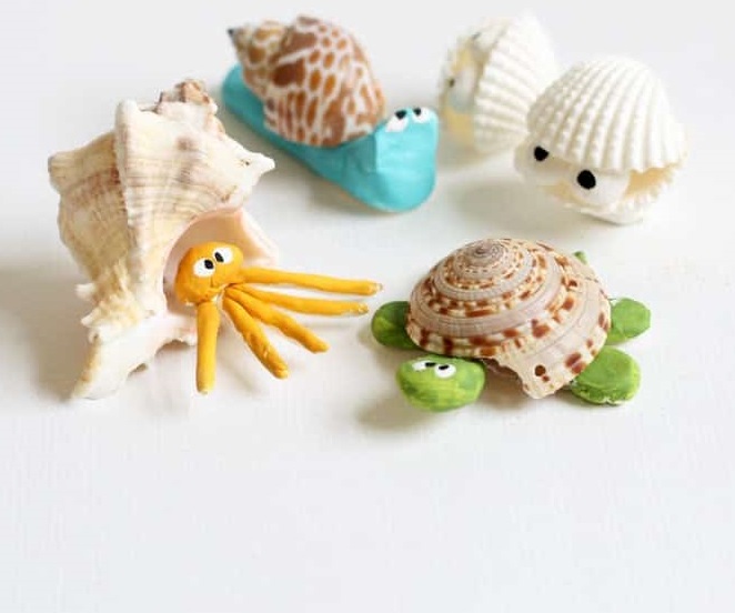 Вы когда-нибудь задумывались, что делать с ракушками? Что ж, эти существа из морских ракушек — очень легкое ремесло, которое вы и / или дети можете сделать, подобно этим очаровательным рыбам из морских ракушек . Создайте здесь любое существо или придумайте свое собственное. Вы также можете поместить сцену в большую стеклянную банку для более постоянного отображения. Соберите ракушки, просушенную на воздухе глину, краски, клей и свое воображение — и приступим!