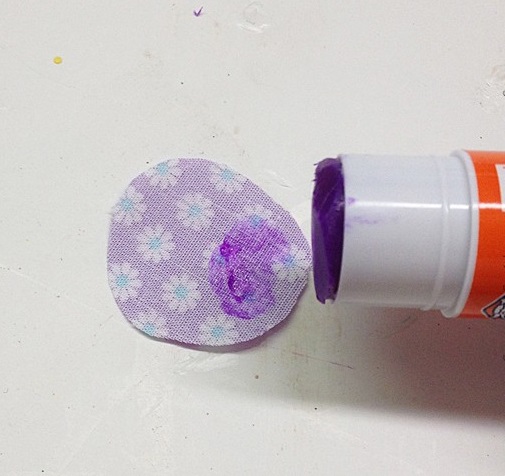- Покройте изнанку тканевого круга клеевым стержнем.