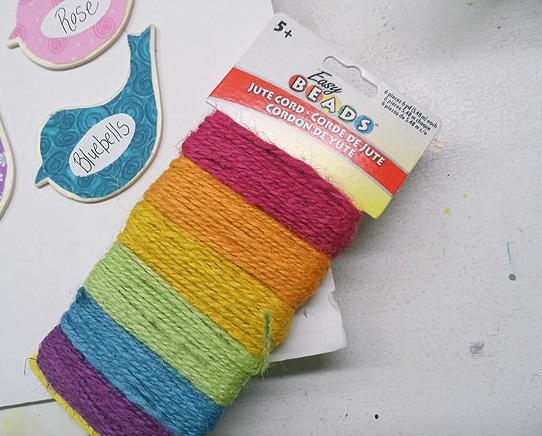 Я также использовал красочный джутовый шнур. Вы действительно будете поражены тем, сколько разных цветов вы можете найти сейчас джутом!