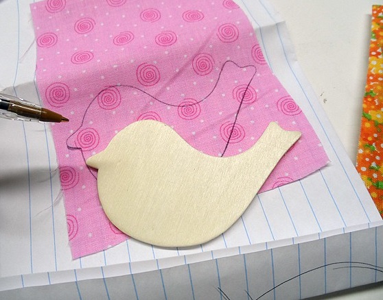 Когда вы вырежете их, прорежьте линию примерно на 1/8 дюйма. Когда вы прикрепляете ткань к деревянной форме птицы, вам нужно, чтобы она была меньше дерева, оставив небольшую границу.