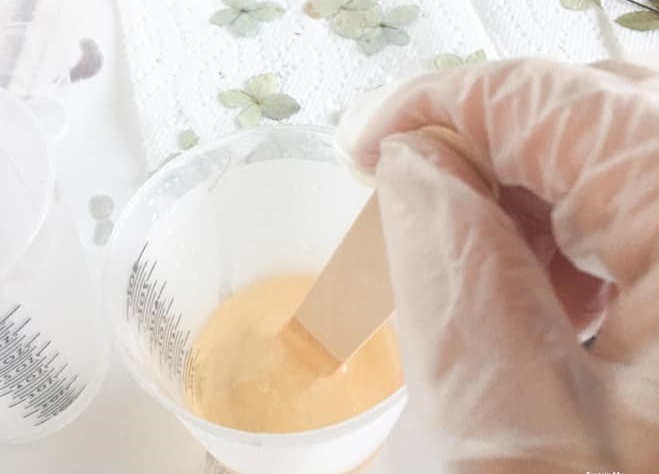 - Перемешивайте в течение двух минут деревянной палочкой. Затем перелейте смесь во вторую чашку и продолжайте помешивать еще минуту. Эта часть действительно важна для достижения наилучших результатов, поэтому не пропускайте ее!