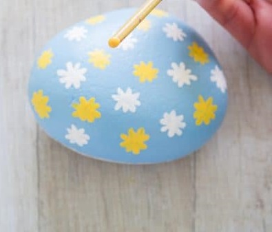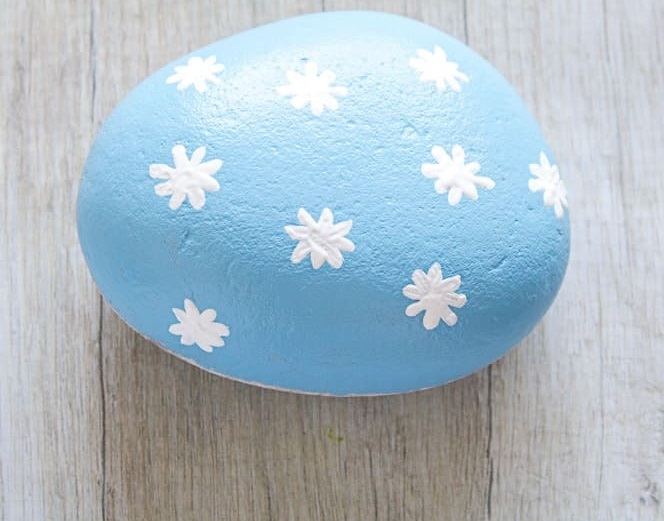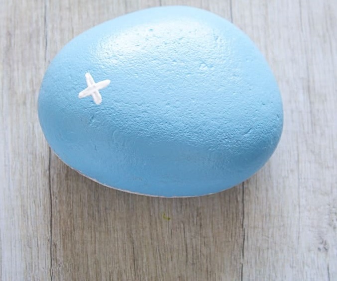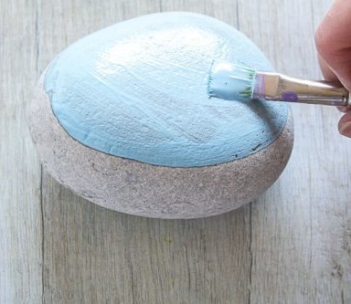 - Раскрасьте поверхность камня небесно-голубым цветом.