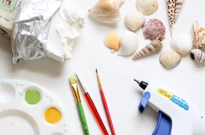 Если вам нужны гладкие идеальные ракушки, вы можете купить сумку в местном магазине для рукоделия, а не собирать их на пляже. А бонус в виде магазинных снарядов? Не нужно их чистить. Белая глина воздушной сушки удобна в использовании и проста в использовании, но имейте в виду, что глиняные формы должны высохнуть в течение ночи, прежде чем рисовать и собирать ракушки, поэтому добавьте это время в свои планы.