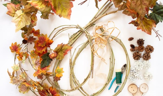 Материалы, необходимые для изготовления венка из тыквы и виноградной лозы