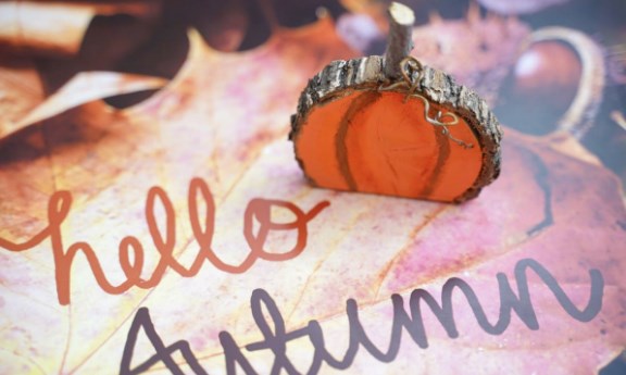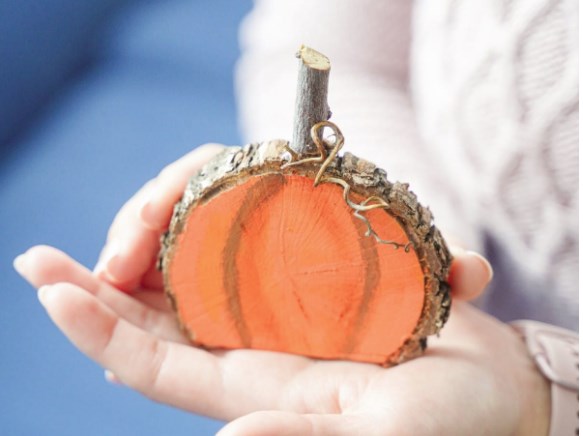 - Приклейте к дереву бусинки или пайетки вместо краски, чтобы создать сияющий вид тыквы.