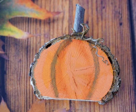 Я слегка одержим тем, насколько весело использовать эти деревянные ломтики в поделках. В этом году я знал, что хочу сделать из чего-нибудь тыквенную грядку, и это был отличный простой способ сделать это. Немного краски и одно или два средства для чистки труб, и у вас есть деревенская тыква, которую вы можете использовать как внутри, так и снаружи дома для декора.