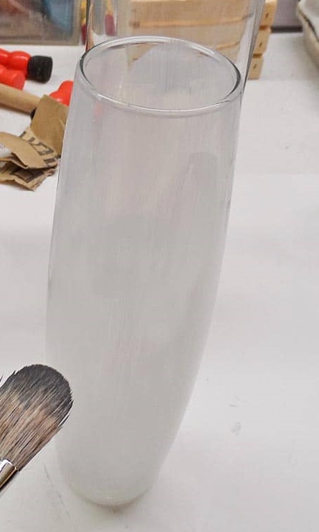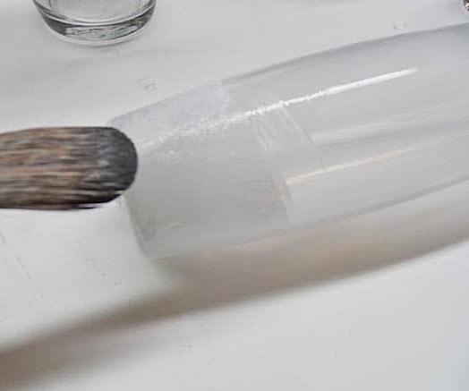 - Вымойте и просушите вазы, затем с помощью кисти нанесите слой декупажа на внешнюю сторону всех ваз. Чтобы перейти к следующему этапу, поверхность не должна быть полностью сухой.